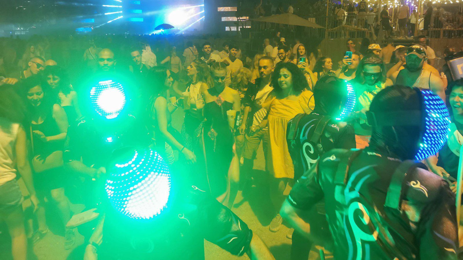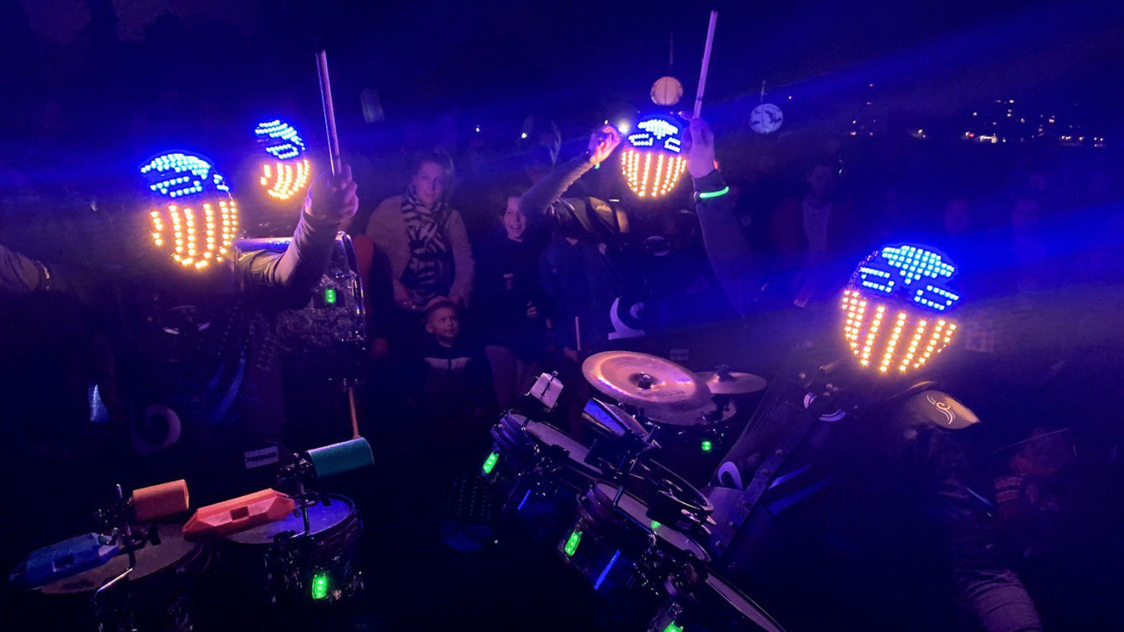 Battledrums Galactica propulse le public dans un univers où les percussions rencontrent la science-fiction. Entre rythmes interstellaires, masks LED hypnotiques et jeux lumineux futuristes, ce show offre une énergie totalement déjantée.