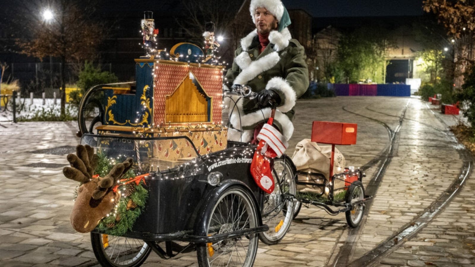 C’est un spectacle musical de rue avec un lutin-chanteur aussi déjanté que festif, accompagné de son vélo triporteur équipé d’un orgue de barbarie. l’artiste revisite les classiques de Noël avec humour et une bonne dose de malice et de décalage en déambulation ou en fixe, selon les besoins.